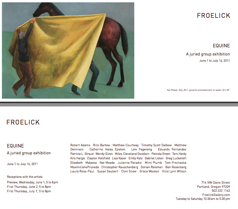 In June, I have a painting in the horse-themed Equine, a group show at the Froelick Gallery, opening June 1-July 16, 2011.