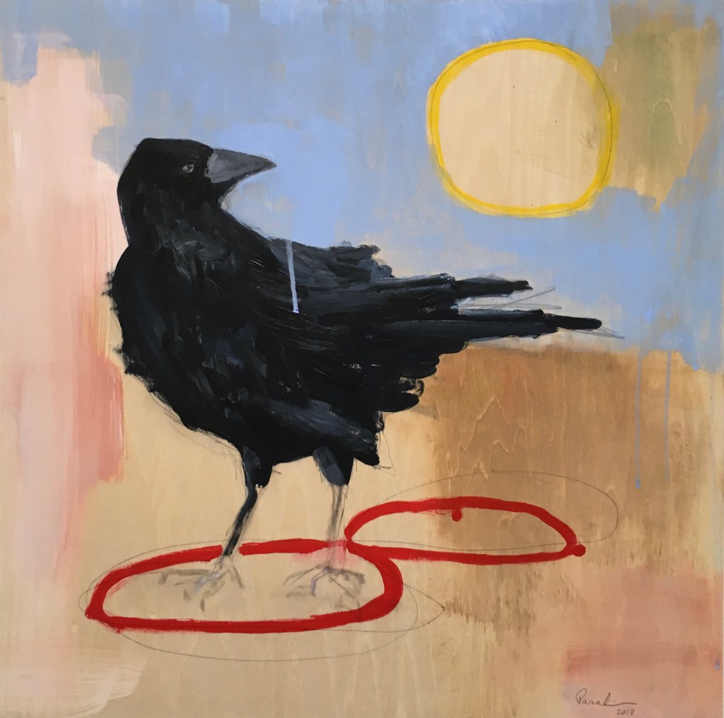 graphite, acrylic, oil on wood 20″ x 20″ 2018