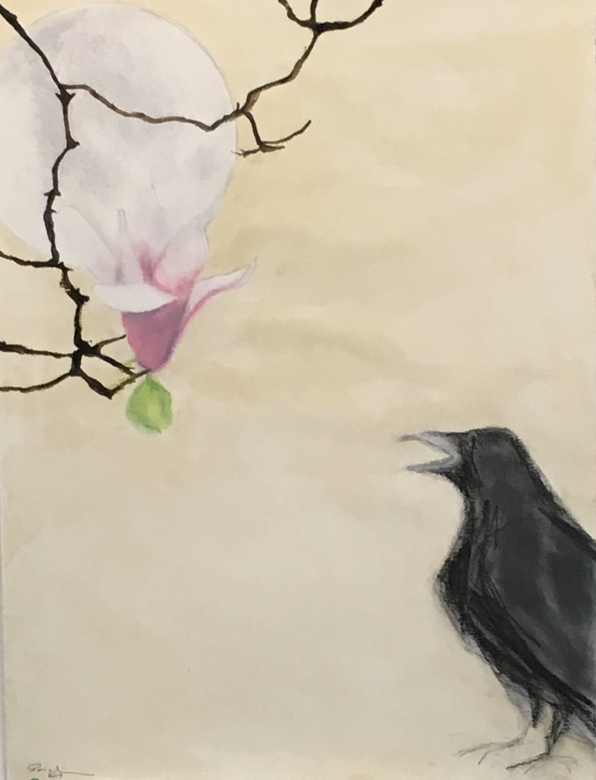 Crow, Magnolia, and Moon by Julianna Paradisi 2019 January 20, 2019 Return to: Random Thoughts of Crows, Butterflies and TransformationFull resolution (2056 × 2690) Image navigation Previous Image Crow, Magnolia, and Moon by Julianna Paradisi 2019 pastel on tea-stained paper