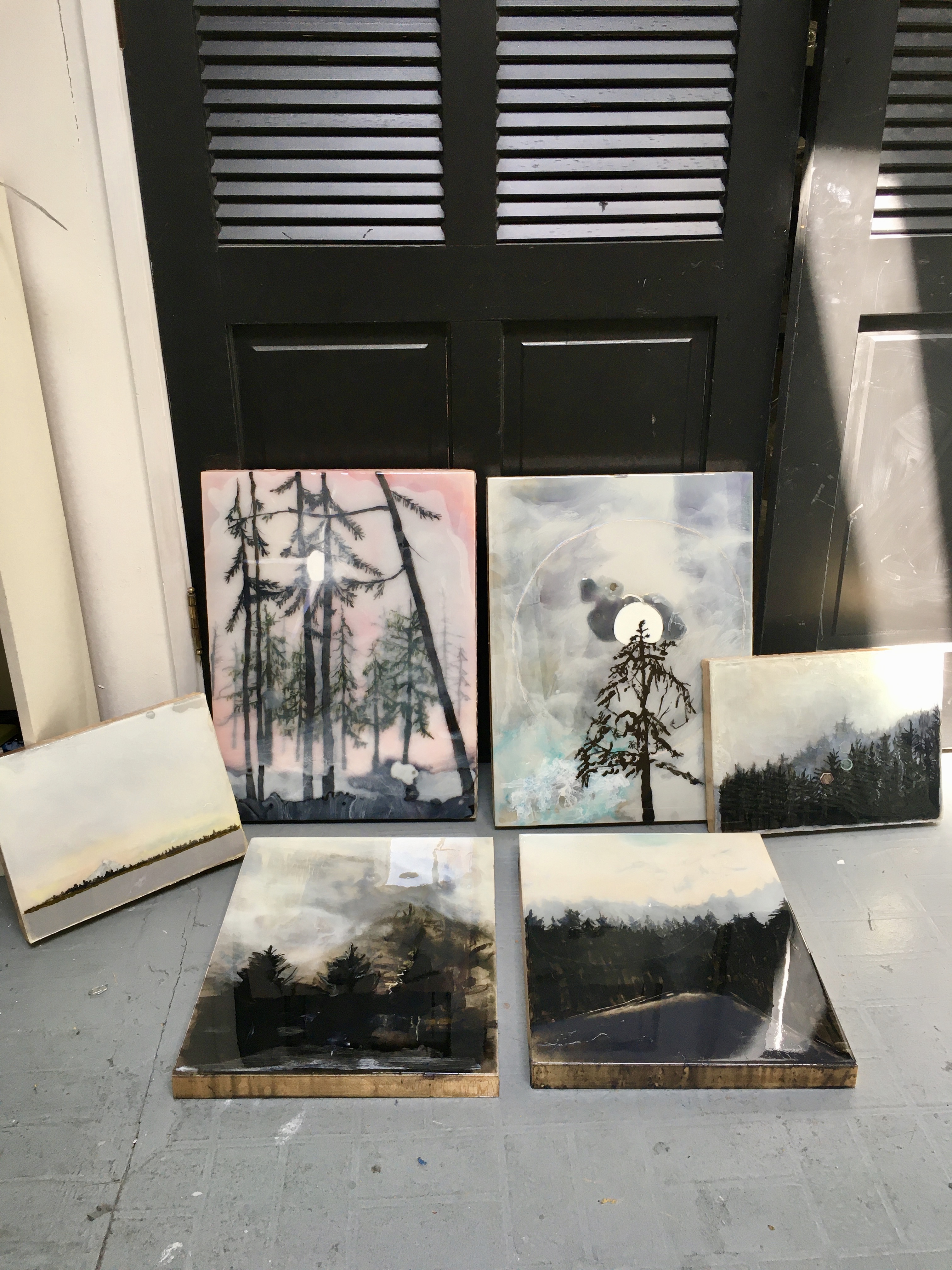 Showtime: Wrapping up a collection of paintings at my studio for delivery and installation at Gallery 114 for the new members show in September. It’s a very exciting process, up until it becomes tedious