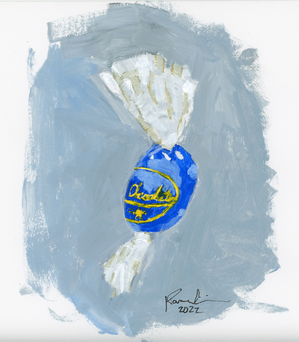 I did as he asked. He dropped a piece of chocolate enclosed in a shiny wrapper into the palm of my hand. He smiled again.